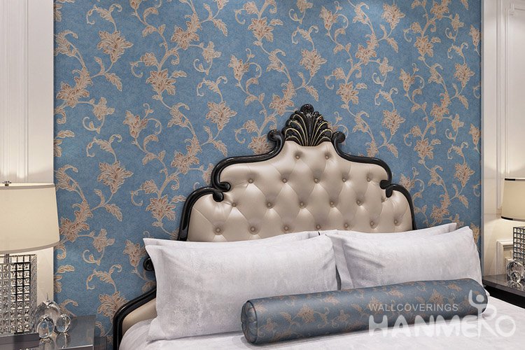 HANMERO Cheap Blue Floral Bedroom Wall PVC Decoration Wallpaper