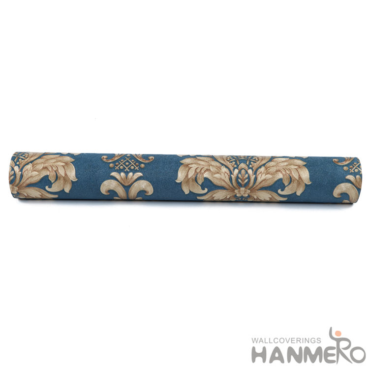 Product Name: HANMERO Classic Fancy Blue Color Damask Design Wallpaper PVC 0.53 * 10M Embossed Technology Home Decor Wallcovering