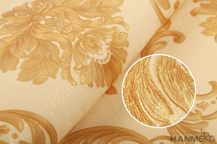 Product Name: HANMERO Strippable Beige Color Chinese 0.53 * 10M PVC Wallpaper European Classic Style on Sale Factory Sell Directlly