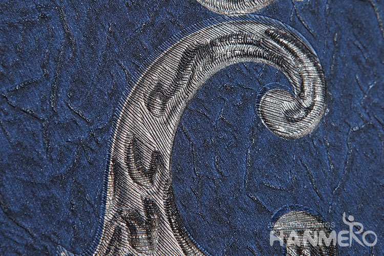 HANMERO Victoria Blue European Floral Bedding Room PVC Wallpaper Embossed